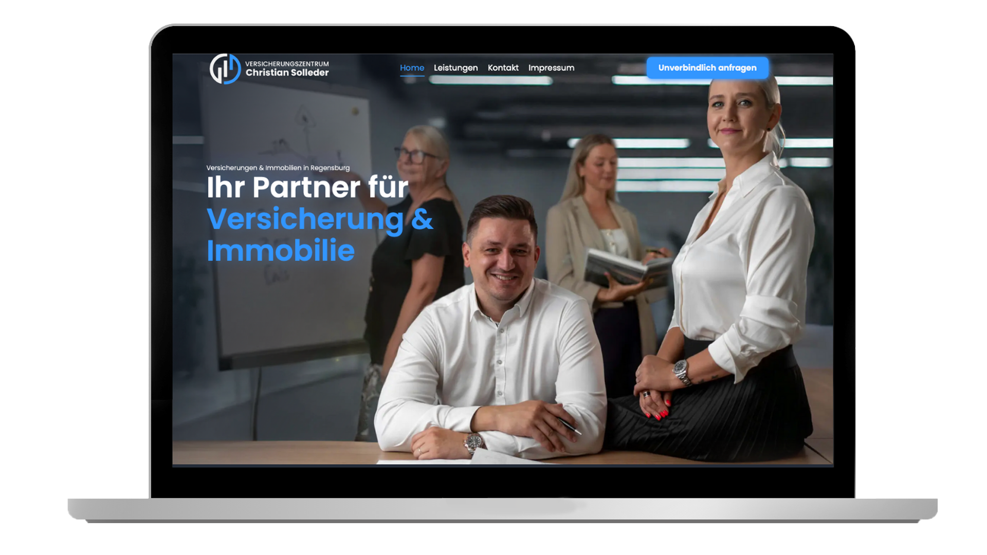 Ein moderner Markenauftritt, der Vertrauen aufbaut und digital überzeugt. Für das Versicherungszentrum Solleder wurde eine neue Website erstellt, die Seriosität und Nähe vermittelt, kombiniert mit authentischen Fotos, die Persönlichkeit zeigen. Durch kontinuierliche Werbekampagnen-Optimierungen steigert das Unternehmen seine regionale Sichtbarkeit und gewinnt langfristig messbar mehr Anfragen von qualifizierten Interessenten.